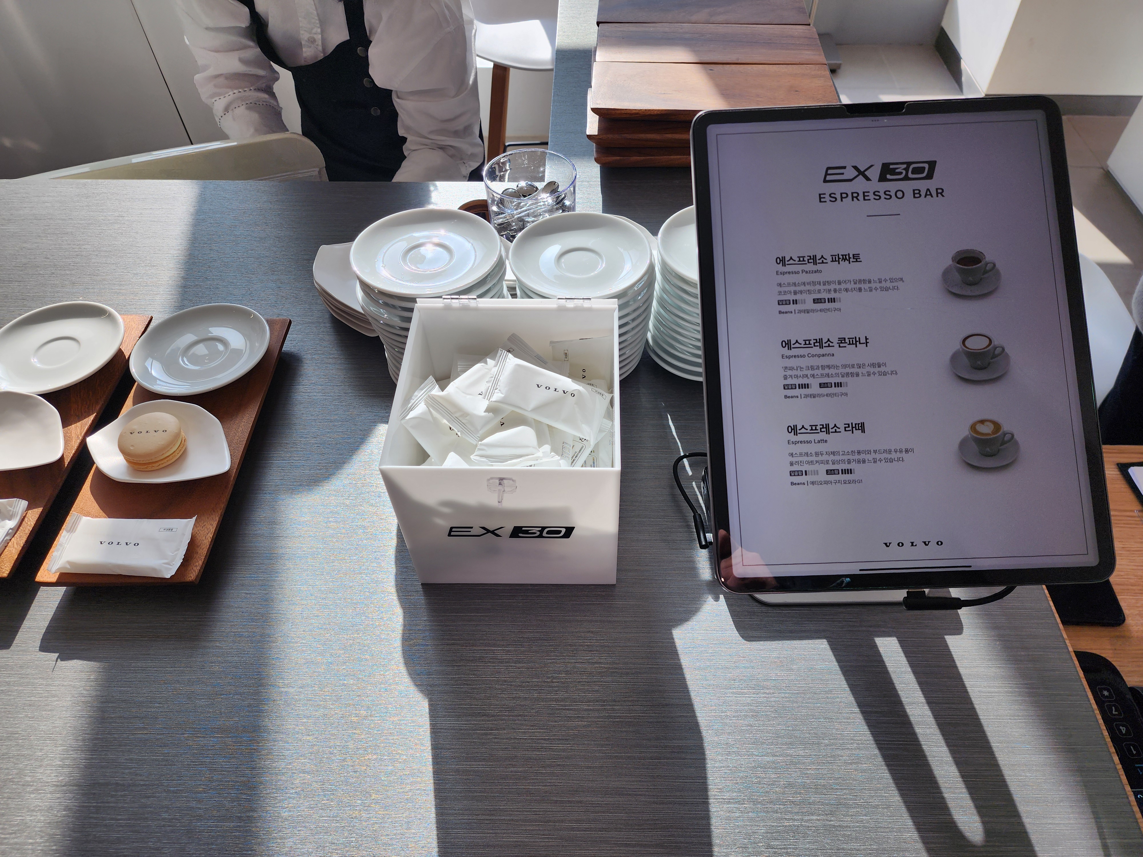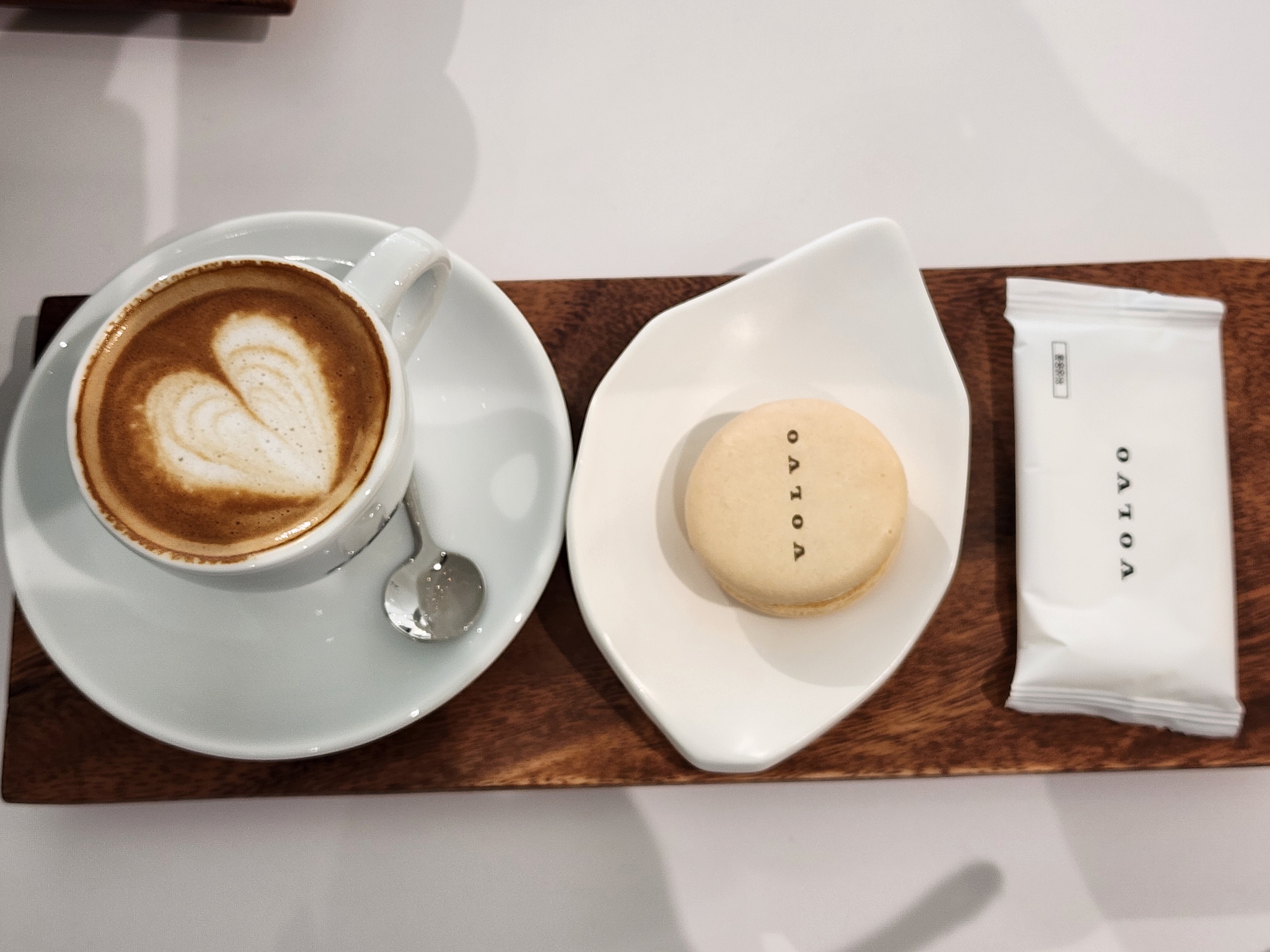 볼보 마카롱에 로고 크으~ 저는 에스프레소 라떼를 주문했습니다.