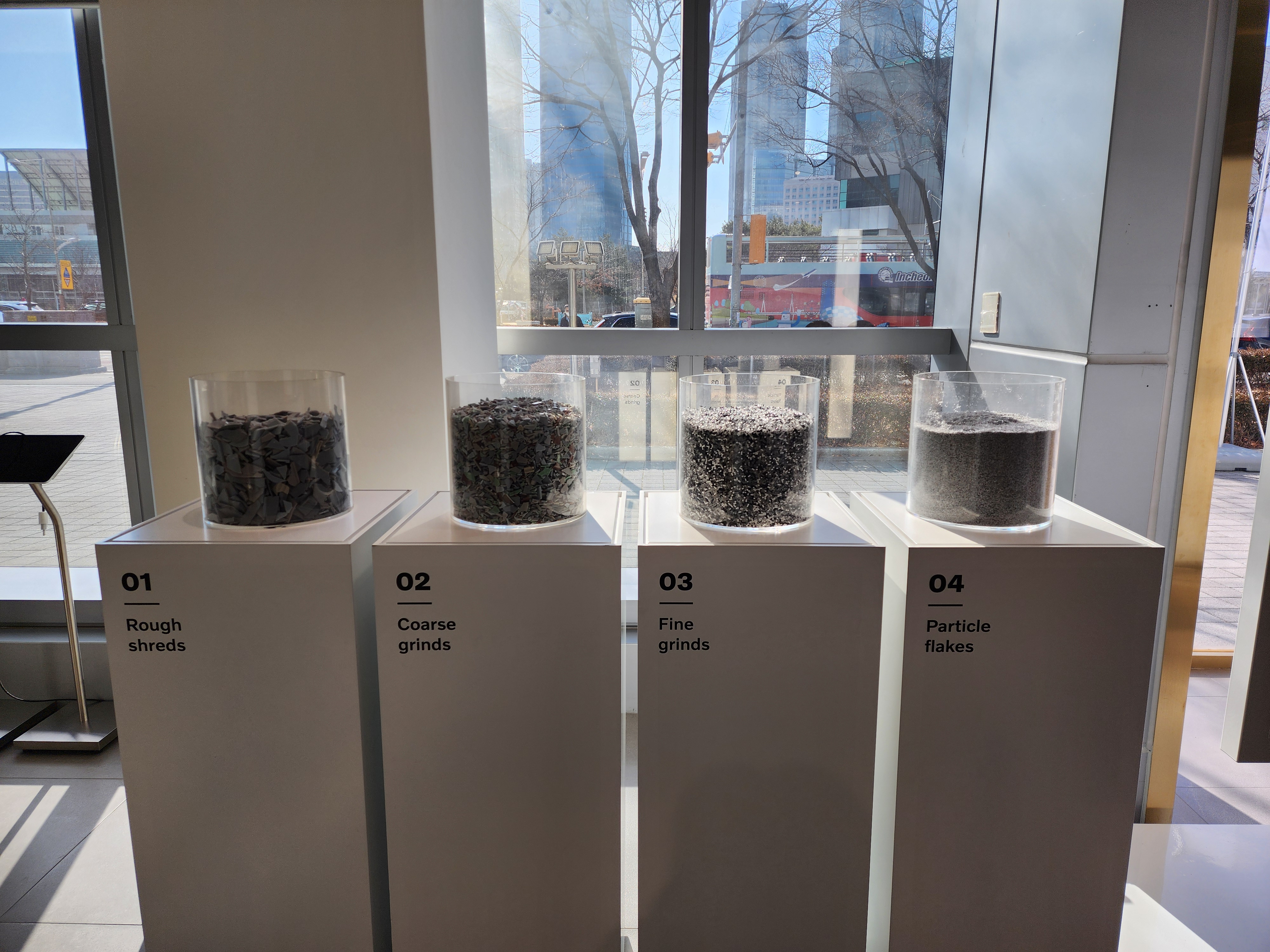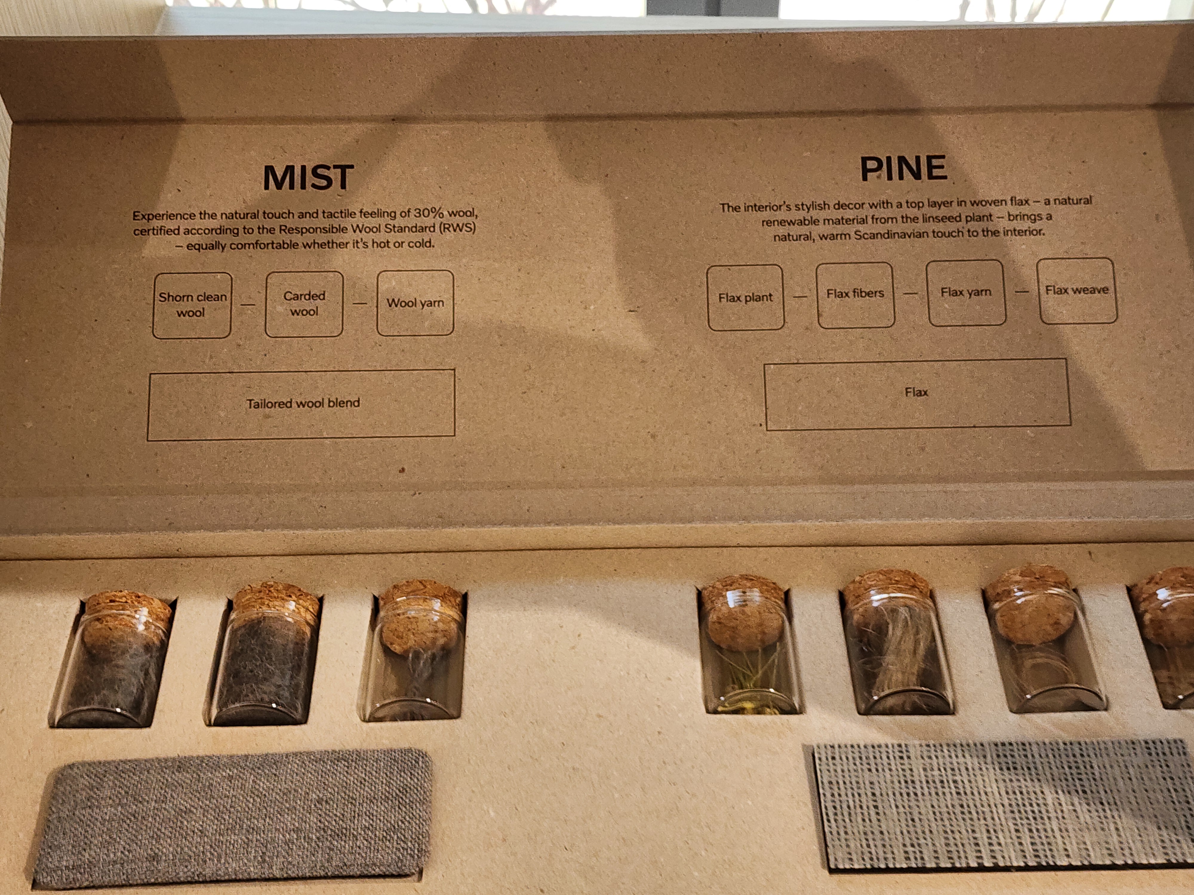 고급스러운 소재라고는 하지만, 사실 볼보 EX30의 내장재는 재활용 소재들입니다. 그것을 자랑하는 것이구요. 대표적으로 플라스틱 재활용입니다.