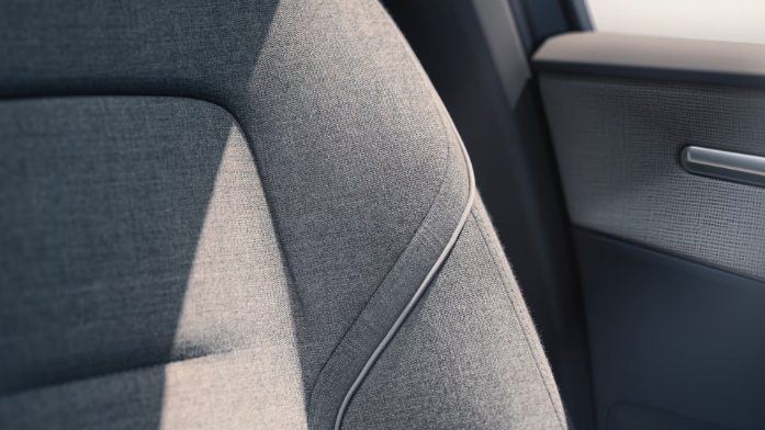 미스트(Mist) 인테리어 옵션은 Tailored Wool Blend로 장식되어 있으며, 아마 장식은 아마씨 식물의 천연 및 재생 가능한 소재를 사용하여 지속 가능성에 대한 볼보의 약속을 강조합니다.