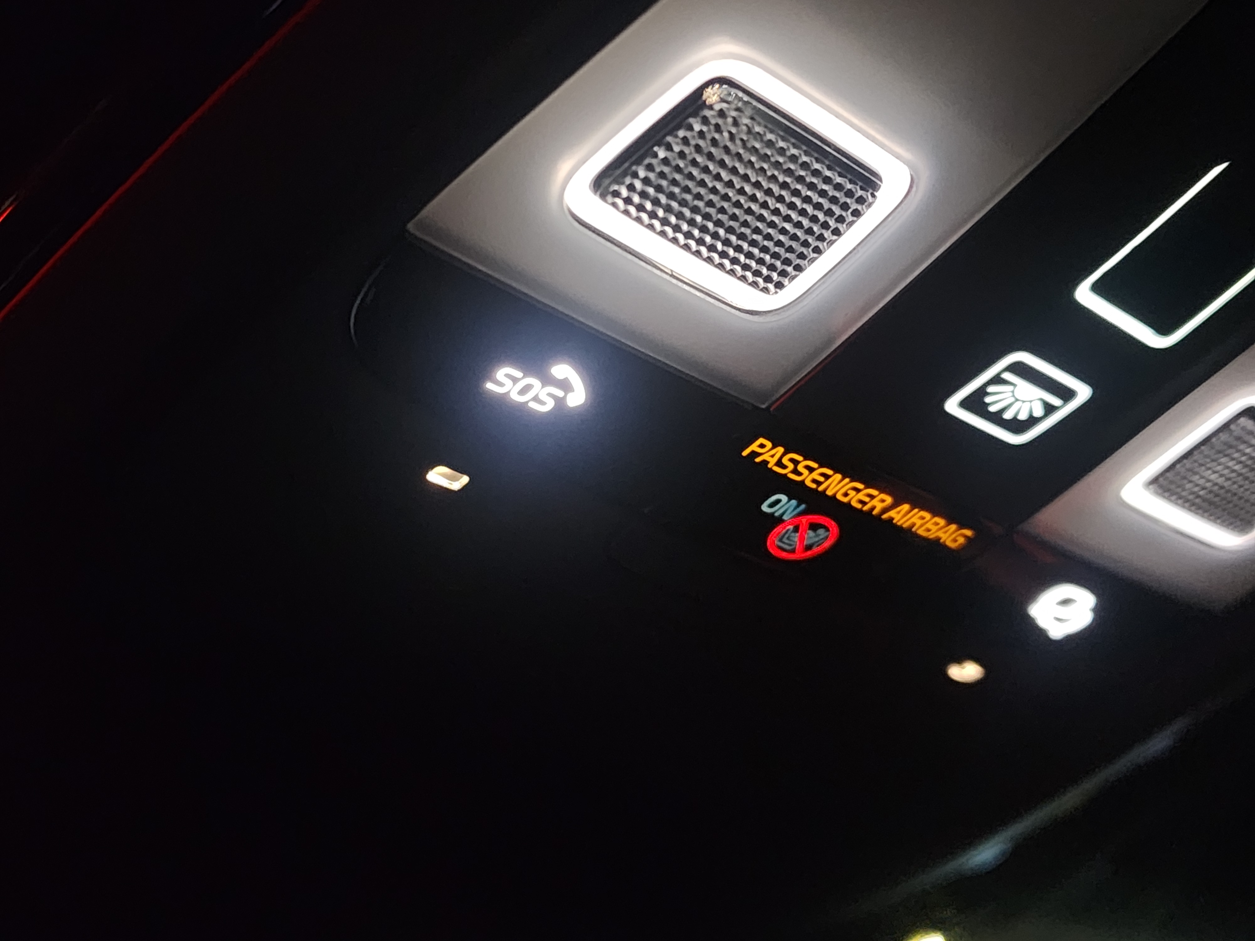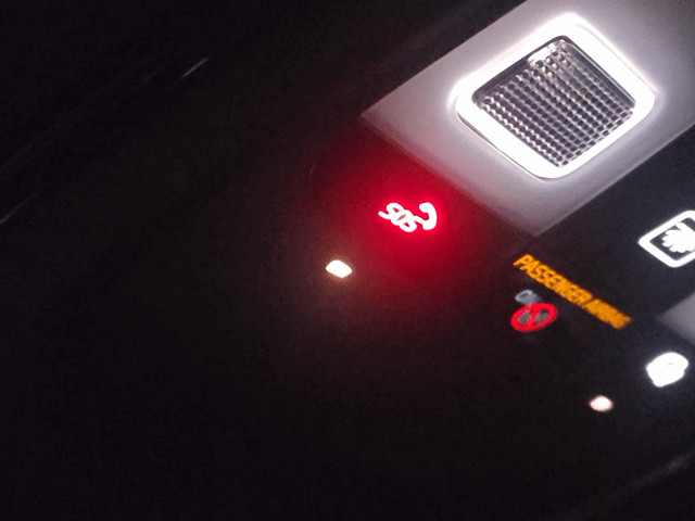 성에 제거 버튼(Max defroster)을 약 20초간 누릅니다. - 루프에 있는 SOS 버튼이 깜박이기 시작할 때까지 버튼을 누르고 있습니다.