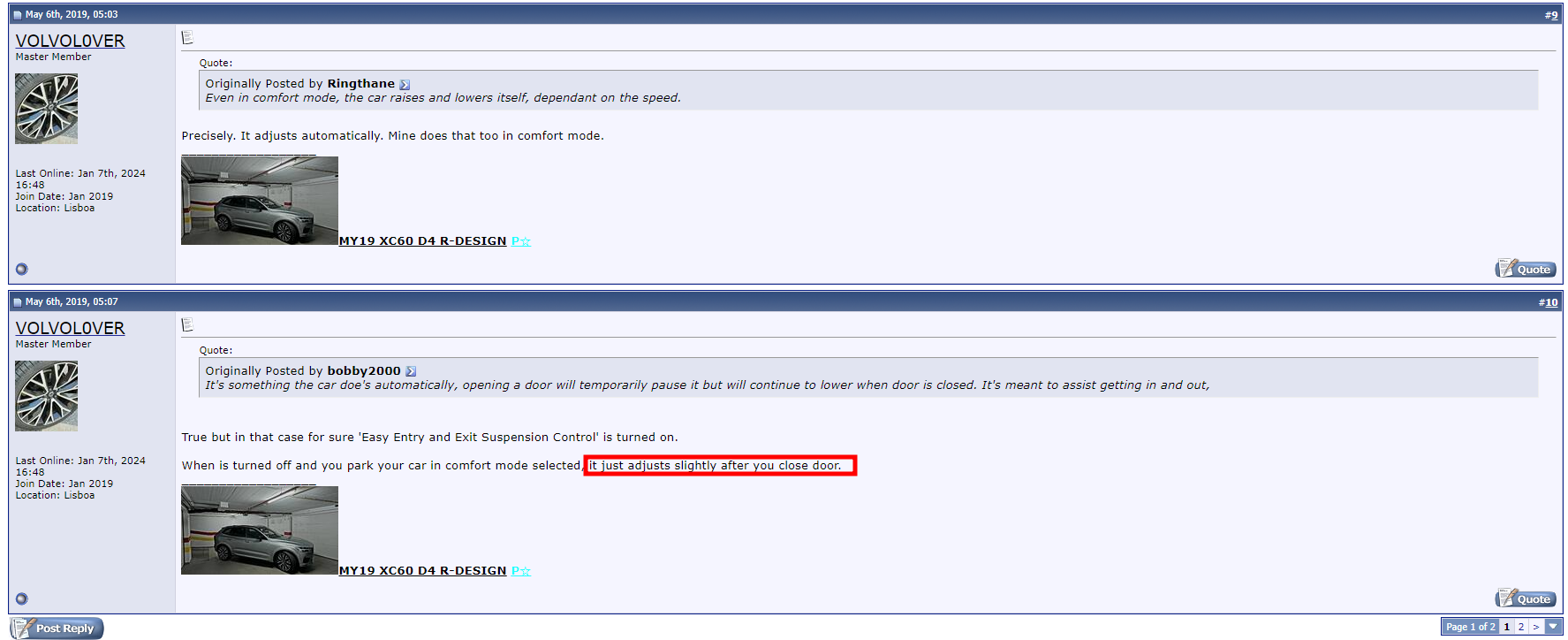 XC60 air suspension height changes after parking - Volvo Owners Club Forum