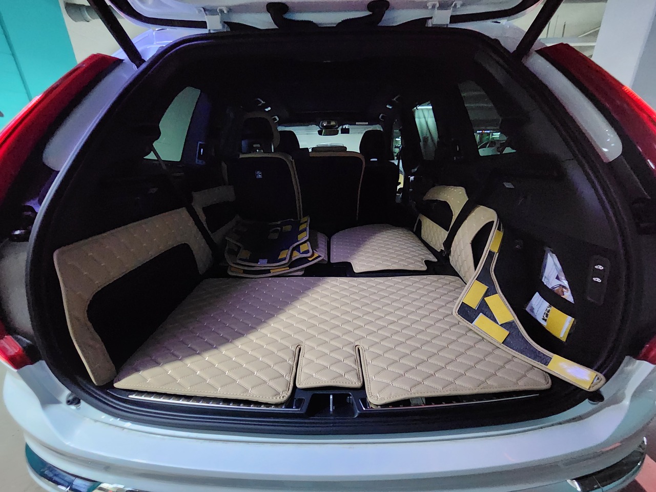 대형 SUV를 구입한 이유가 제가 낚시 다닐 때 짐도 좀 많이 싣고 차박도 용이하려고 구입한 것이라, 쿠팡에서 볼보 XC90용 차박 매트를 구입해서 한 땀 한 땀 붙였습니다.