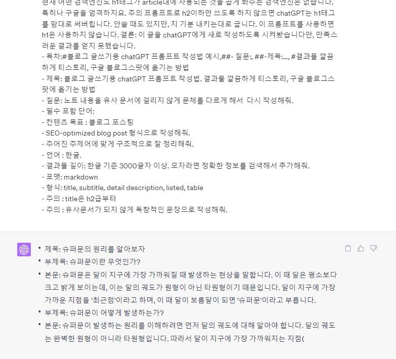 블로그 글쓰기용 chatGPT 프롬프트 작성법 예시.