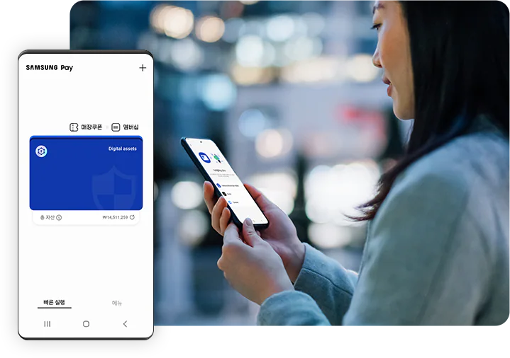 - 삼성페이 앱 실행: 앱을 열거나 홈 화면에서 아래로 스와이프 하여 삼성페이 앱을 실행합니다.