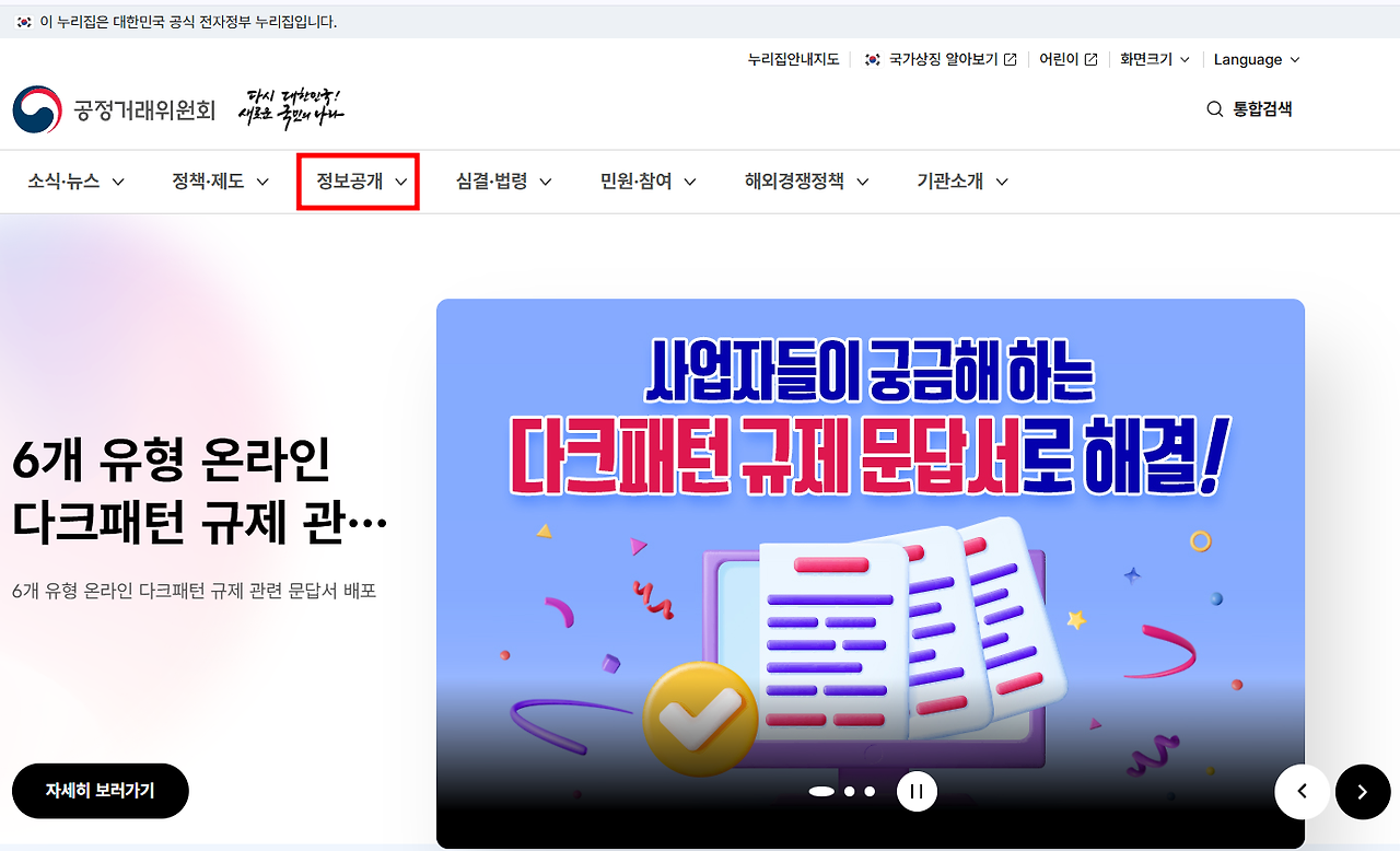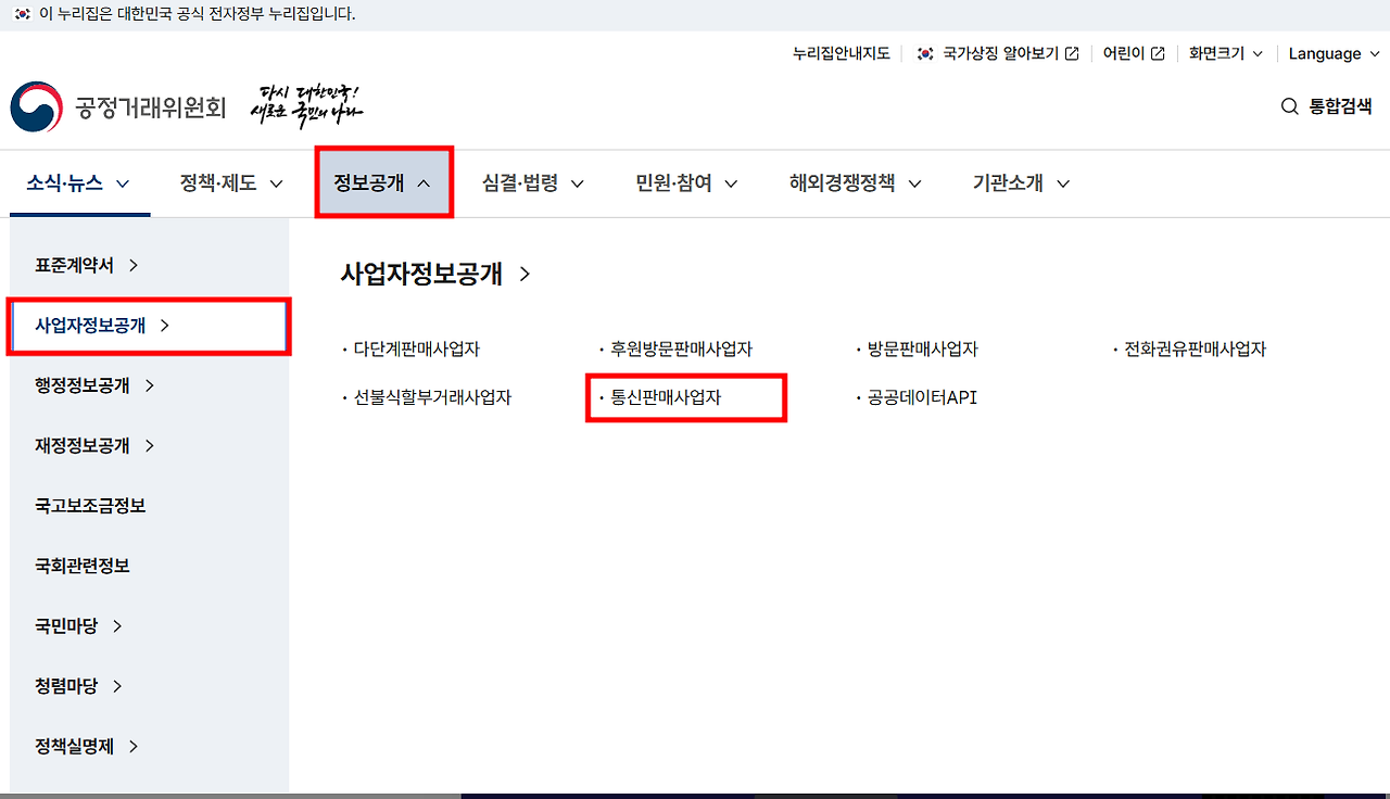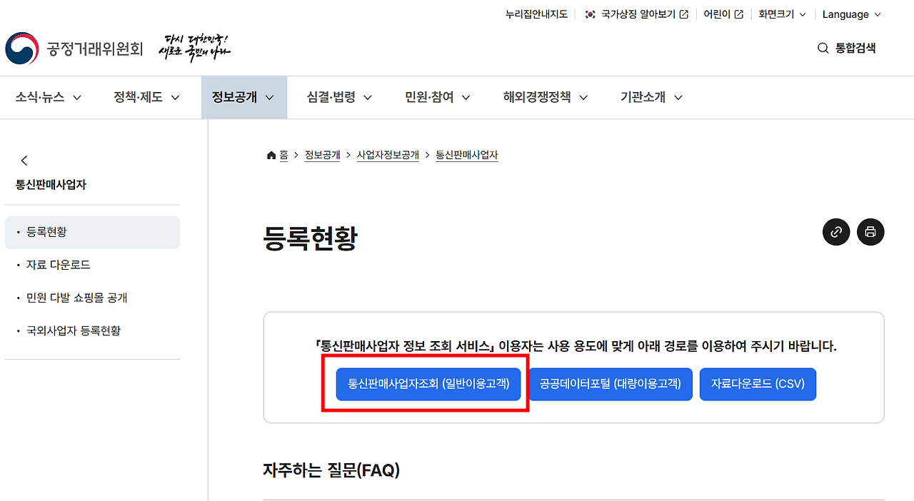 - 공정거래위원회 사업자정보공개 페이지 접속
