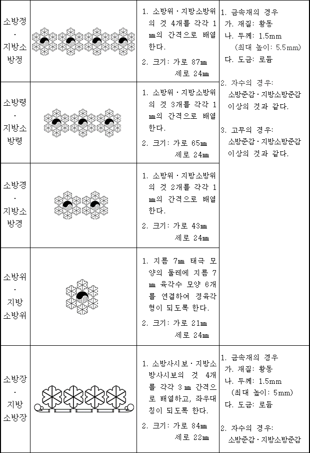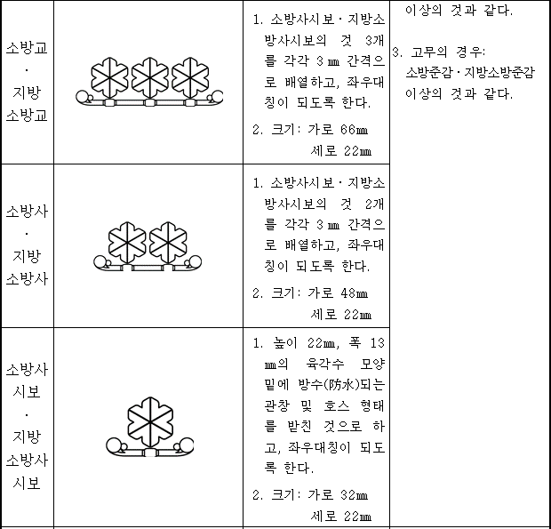 - 금색 태극 육각수: 소방준감~소방총감(1‒4개)
