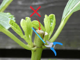 - 시든 꽃 아래 2~3번째 잎마디 위에서 절단