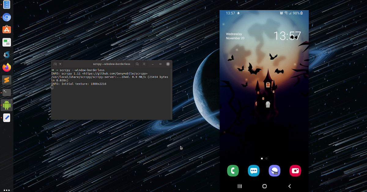 - Scrcpy 실행 → 자동으로 스마트폰 화면이 PC에 표시됨