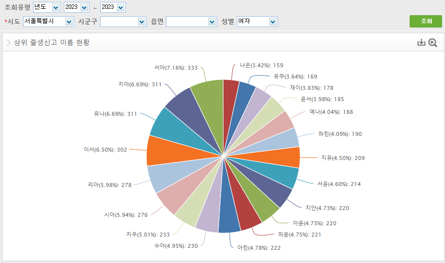2023년 여자아이 이름 순위