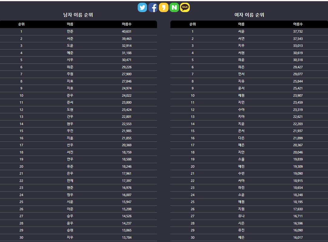 여자아이 이름 순위