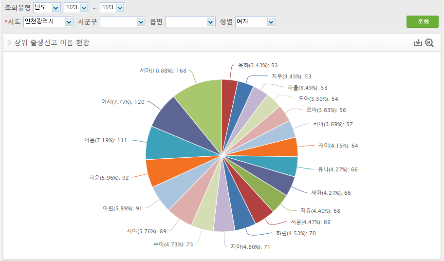 신생아 이름 통계 검색: 2023년 신생아 이름의 트렌드와 순위