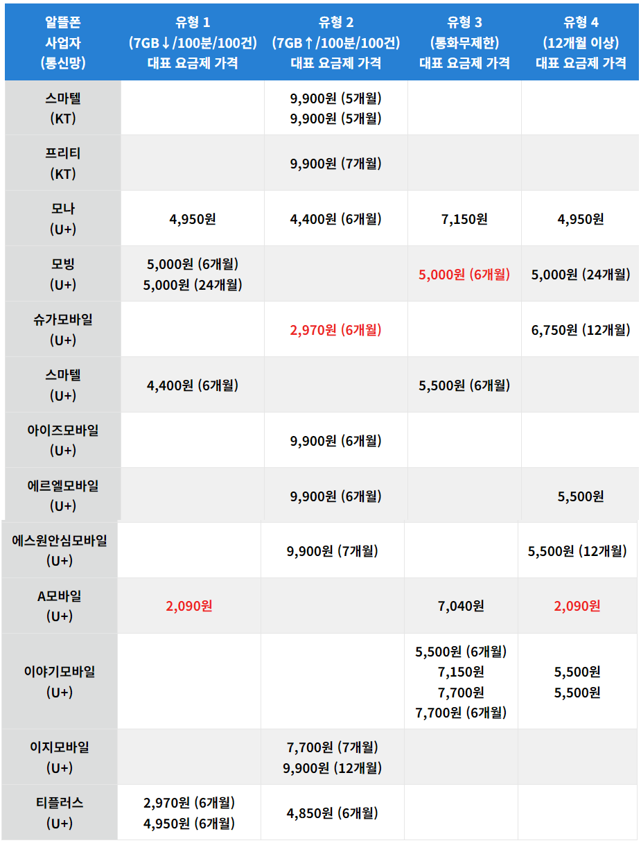 알뜰폰 통신사 순위 및 요금제 추천