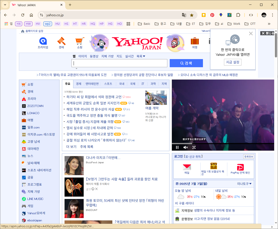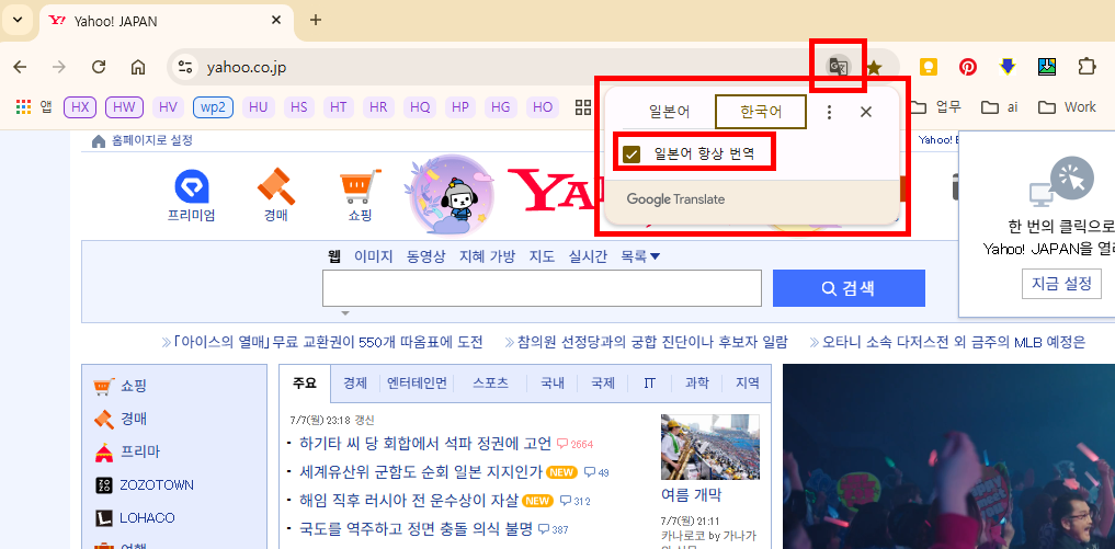 야후 재팬 한글판 홈페이지 이용