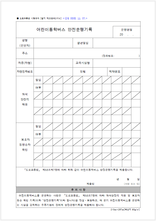 어린이 통학버스 신고서 작성 방법