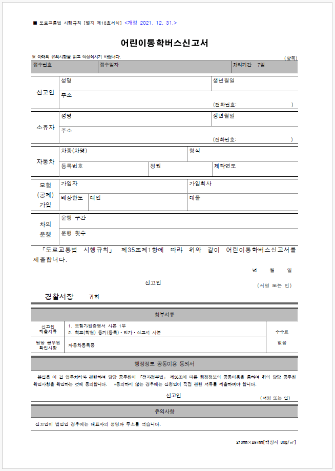 어린이 통학버스 신고서 작성 방법