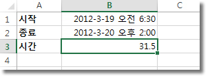 - 결과: 이 공식의 결과는 31.5시간입니다. 이는 두 날짜 및 시간 사이의 총 경과 시간을 나타냅니다.
