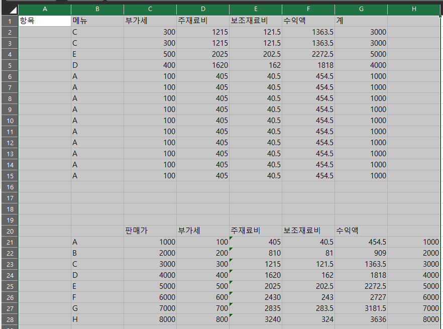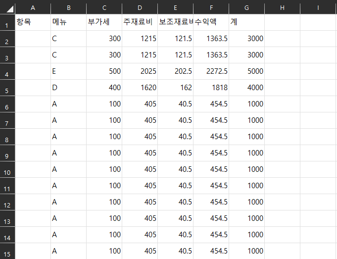 엑셀 행과 열의 동일한 간격으로 조절하기