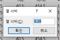 엑셀 열너비 설정하기