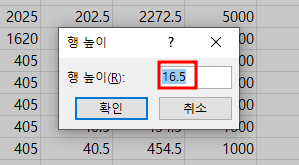 마우스로 엑셀 행 높이 조절하기