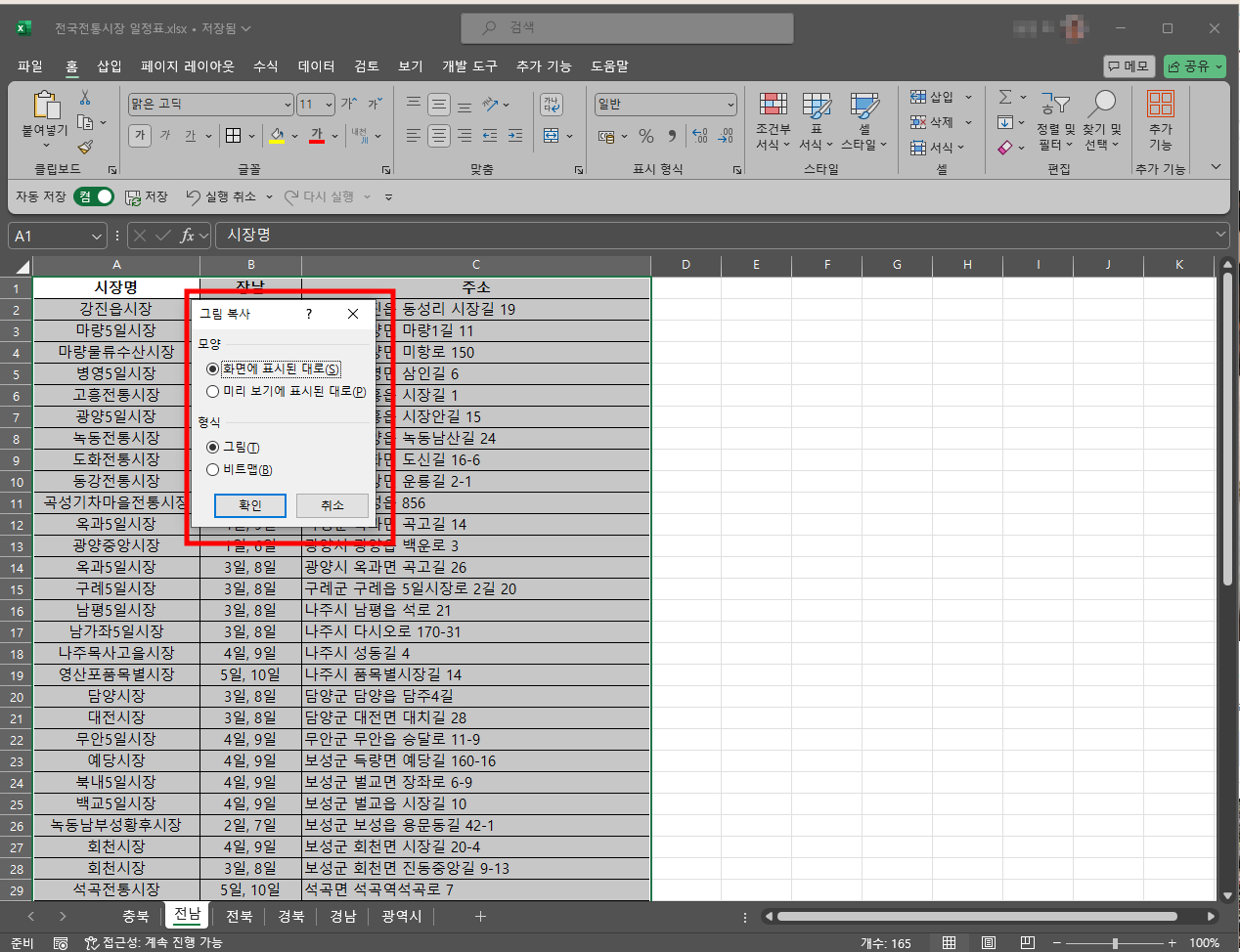 엑셀 캡쳐와 스크린샷 찍는 법