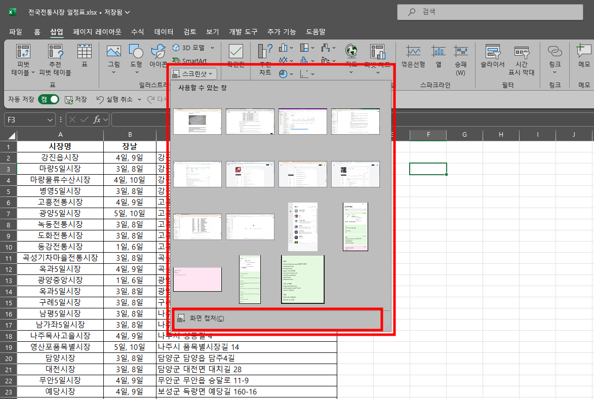 엑셀 캡쳐와 스크린샷 찍는 법