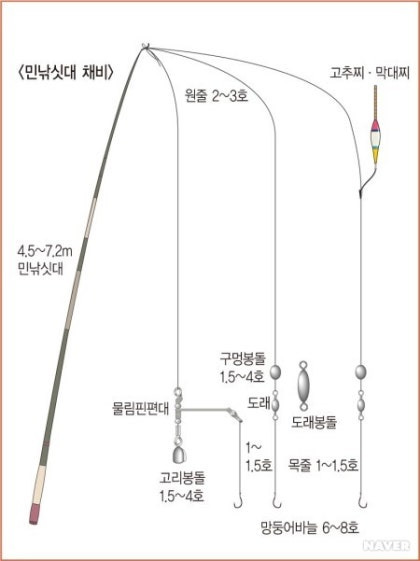 - 바닥채비: 바늘이 바닥에 닿도록 세팅