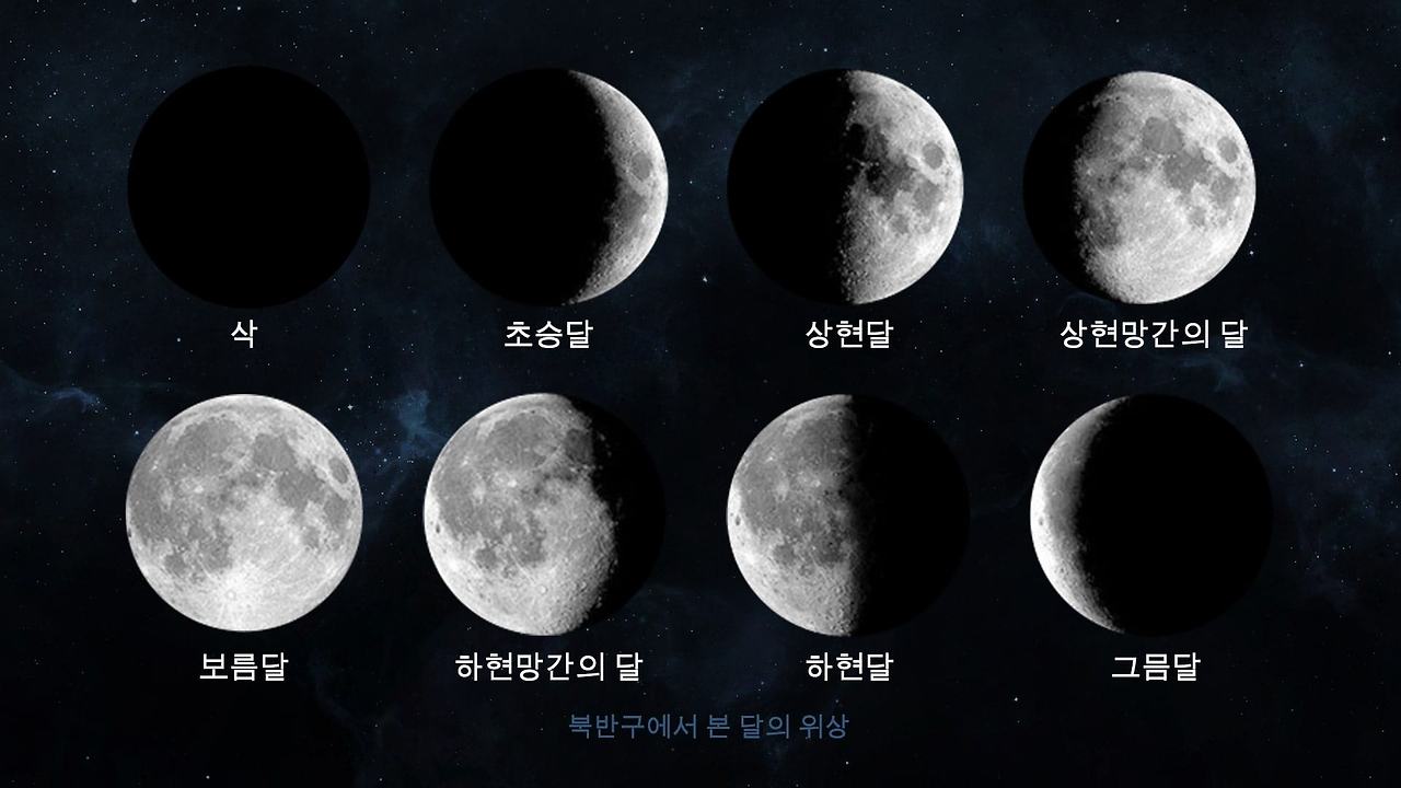 | Phase | Northern Hemisphere(북반구 달모양 이모지) | Southern Hemisphere(남반구 달모양 이모지) |
