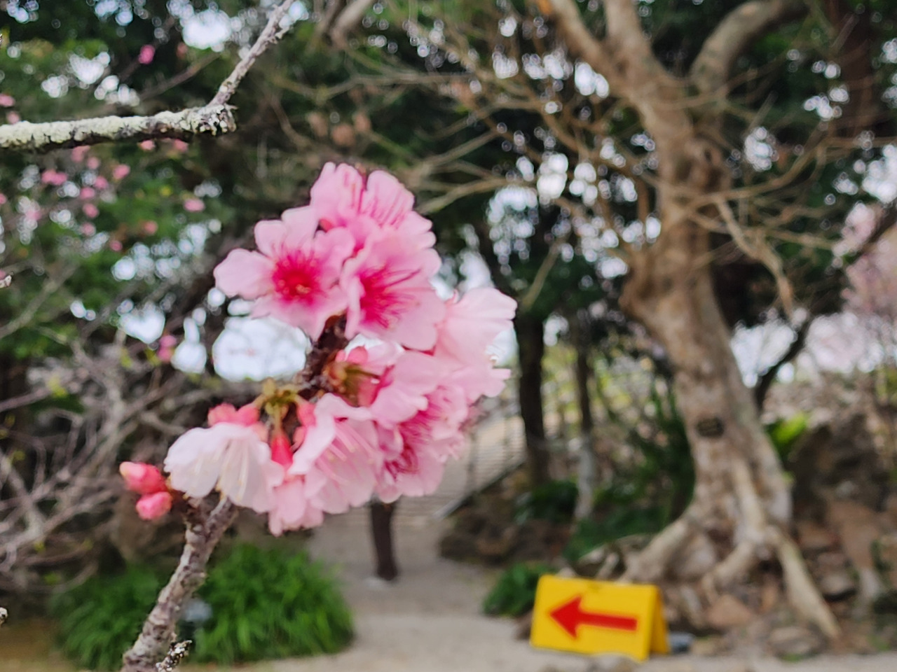 그런데도 불구하고, 이번 방문은 조금 아쉬운 점도 있었습니다. 벚꽃의 만개 시기를 노렸던 만큼 기대감이 컸지만, 추운 날씨의 영향으로 꽃잎이 모두 활짝 피지는 않아 다소 아쉬웠습니다. 그러나 이는 오히려 겨울과 봄의 경계에서 느껴지는 오키나와의 또 다른 매력으로 다가왔습니다.