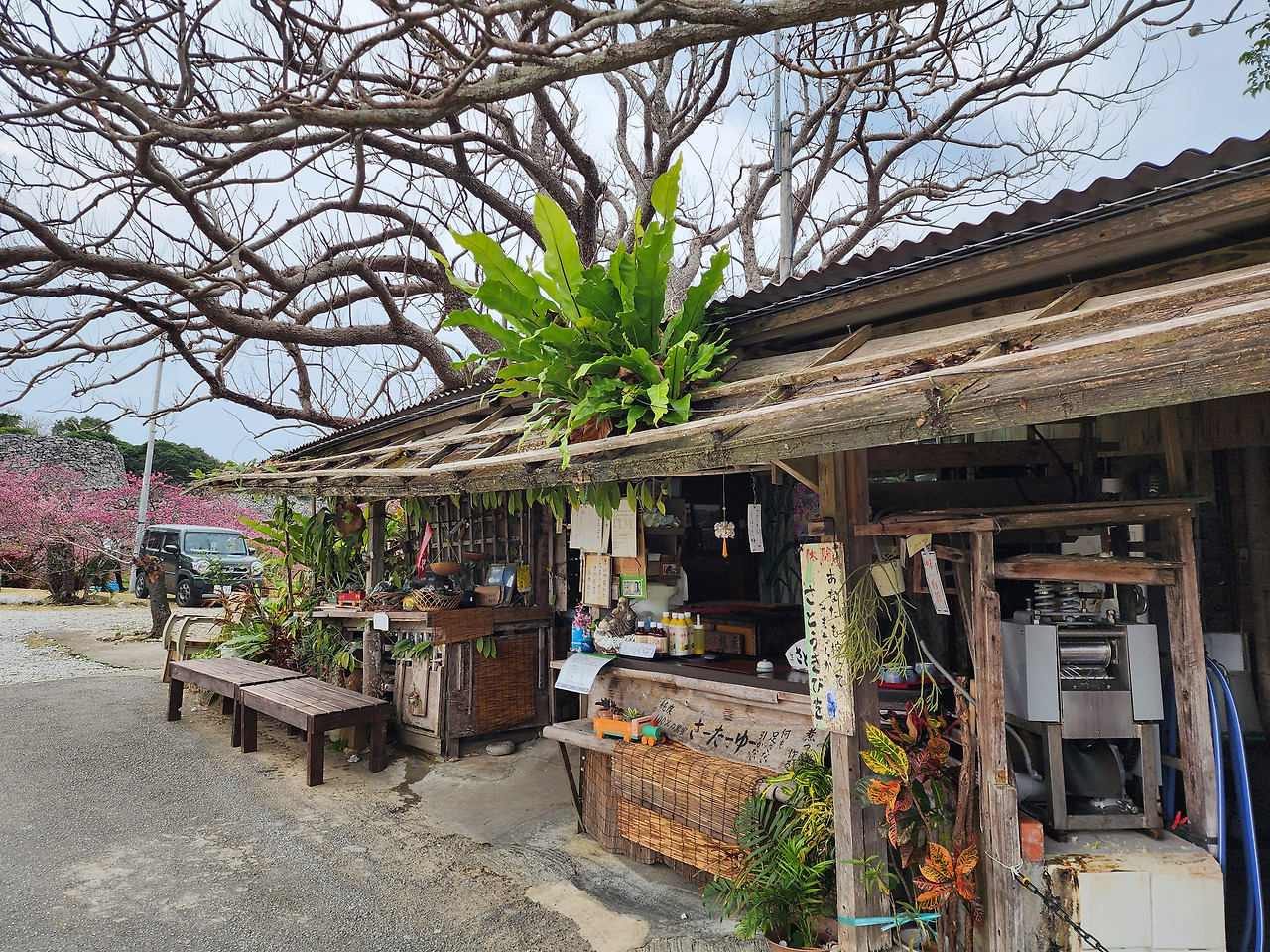 야에다케 공원 안에 있는 작은 상점입니다. 로컬푸드? 카페일까요? 주차장도 갖추고 있습니다. 가게 건물 자체가 매우 토속적으로 생겼기에 사진을 찍어왔습니다. 이 가게 주변에는 온갖 식물이 즐비합니다. 오키나와 사람들은 식물을 많이 사고 파는 듯합니다. 하지만 검역 때문에 외국인인 저는 사 올 수가 없었습니다.