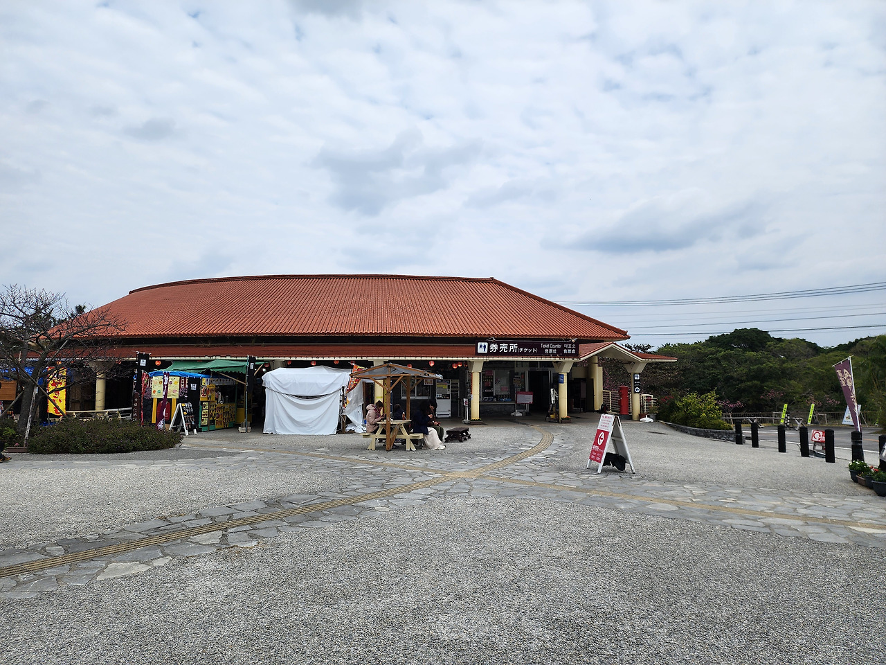 입구 앞에 매표소가 있습니다. 화장실도 있고, 카페도 있으며, 기념품샵도 있습니다. 나키진 성터 입장료는 1인당 600엔입니다. 만좌모 입장료가 100엔인 것에 비하면 꽤 비싼 편이지만, 그 정도 지불할 가치가 있습니다.