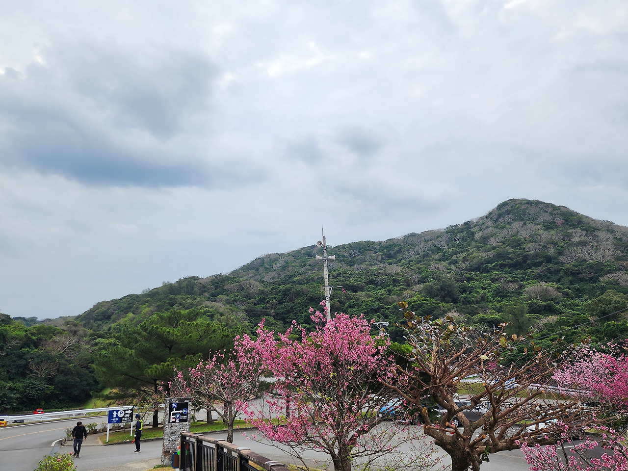 오키나와 여행 일정 중 가장 기억에 남는 것은 바로 야에다케 사쿠라노모리 공원에서의 산길 드라이브와 벚꽃 감상이었습니다. 이곳은 약 7,000그루에 이르는 칸히자쿠라 나무가 산등성이를 따라 줄지어 서 있어, 운전하면서도 자연의 아름다움을 온몸으로 느낄 수 있는 장소였습니다. 가족 단위의 방문객뿐 아니라 연인들이 함께 걷기에도 최적의 코스로 손꼽히고 있으며, 곳곳에 설치된 통신탑과 샛길은 오키나와의 이국적인 풍경을 한층 더 돋보이게 합니다.