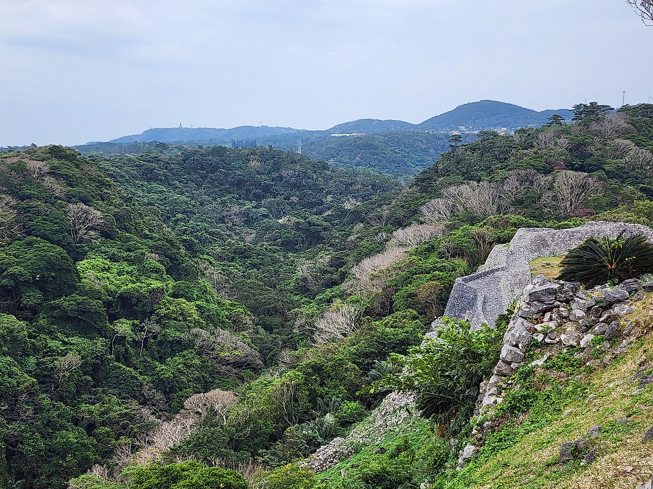 오키나와를 굳이 침공해 갈 인간들은 일본 밖에 없었을 텐데 참 험난해 보이는 협곡에 산성을 쌓았다고 생각 됐습니다만, 사실 한국의 산성들이 더 대단합니다. 우리나라 산성은 정말 첩첩산중에 쌓은 성들이거든요. 나키진 성터는 이렇게 해안 쪽에는 깎아지는 절벽 같지만, 입구 쪽은 그냥 평지입니다.