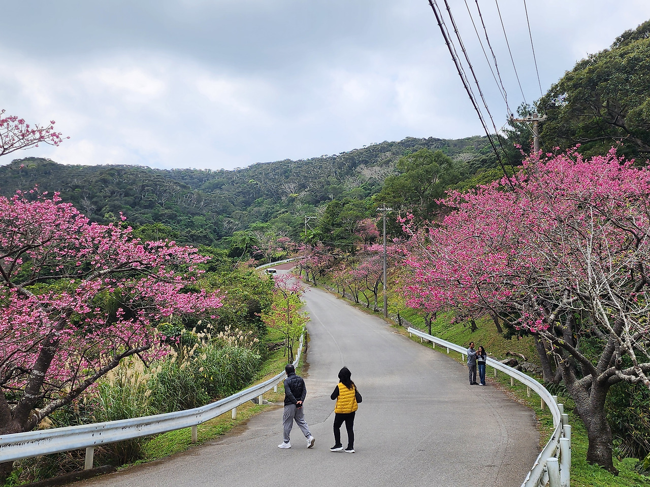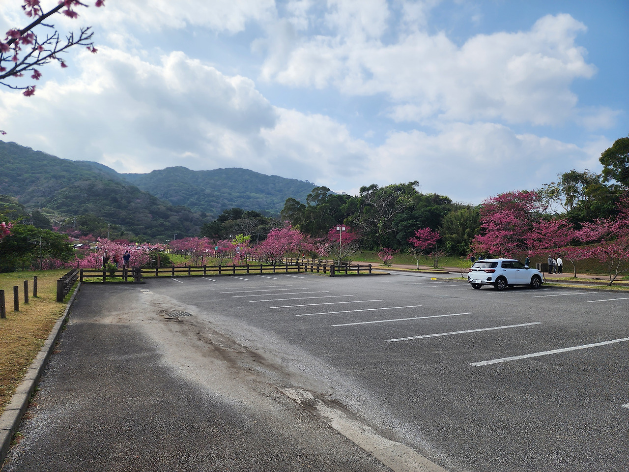 오키나와 여행 일정 중 가장 기억에 남는 것은 바로 야에다케 사쿠라노모리 공원에서의 산길 드라이브와 벚꽃 감상이었습니다. 이곳은 약 7,000그루에 이르는 칸히자쿠라 나무가 산등성이를 따라 줄지어 서 있어, 운전하면서도 자연의 아름다움을 온몸으로 느낄 수 있는 장소였습니다. 가족 단위의 방문객뿐 아니라 연인들이 함께 걷기에도 최적의 코스로 손꼽히고 있으며, 곳곳에 설치된 통신탑과 샛길은 오키나와의 이국적인 풍경을 한층 더 돋보이게 합니다.