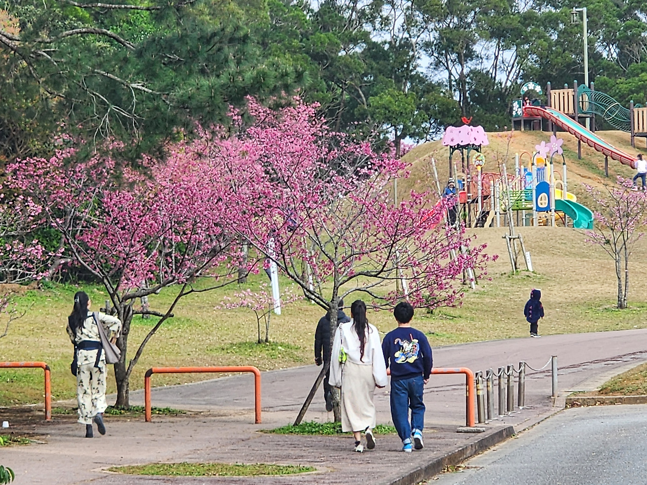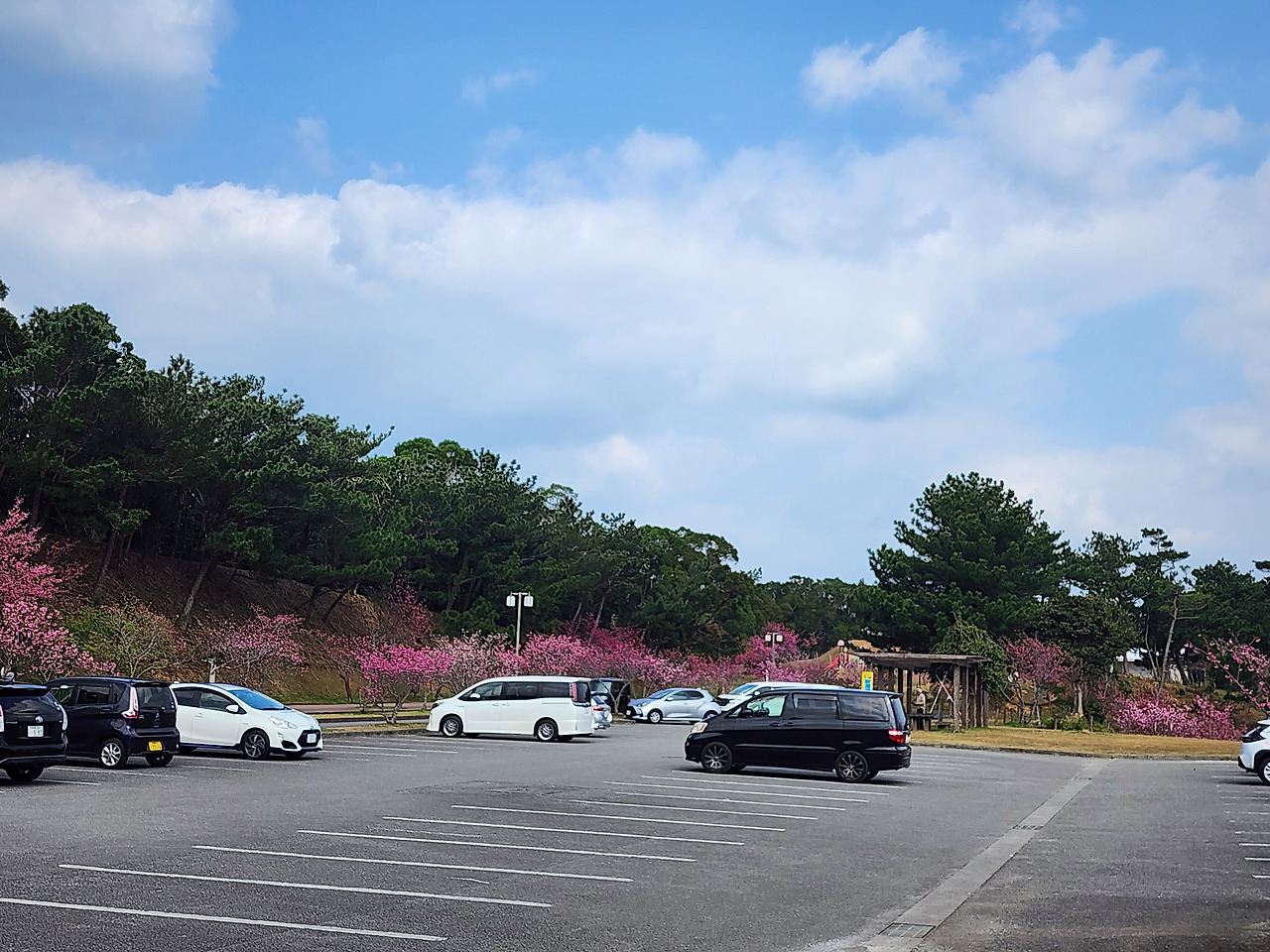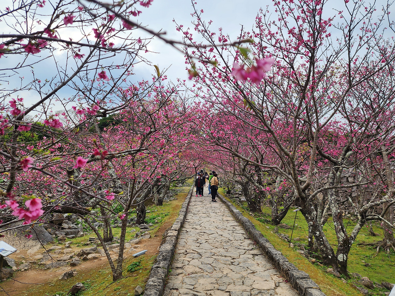 그런데도 불구하고, 이번 방문은 조금 아쉬운 점도 있었습니다. 벚꽃의 만개 시기를 노렸던 만큼 기대감이 컸지만, 추운 날씨의 영향으로 꽃잎이 모두 활짝 피지는 않아 다소 아쉬웠습니다. 그러나 이는 오히려 겨울과 봄의 경계에서 느껴지는 오키나와의 또 다른 매력으로 다가왔습니다.