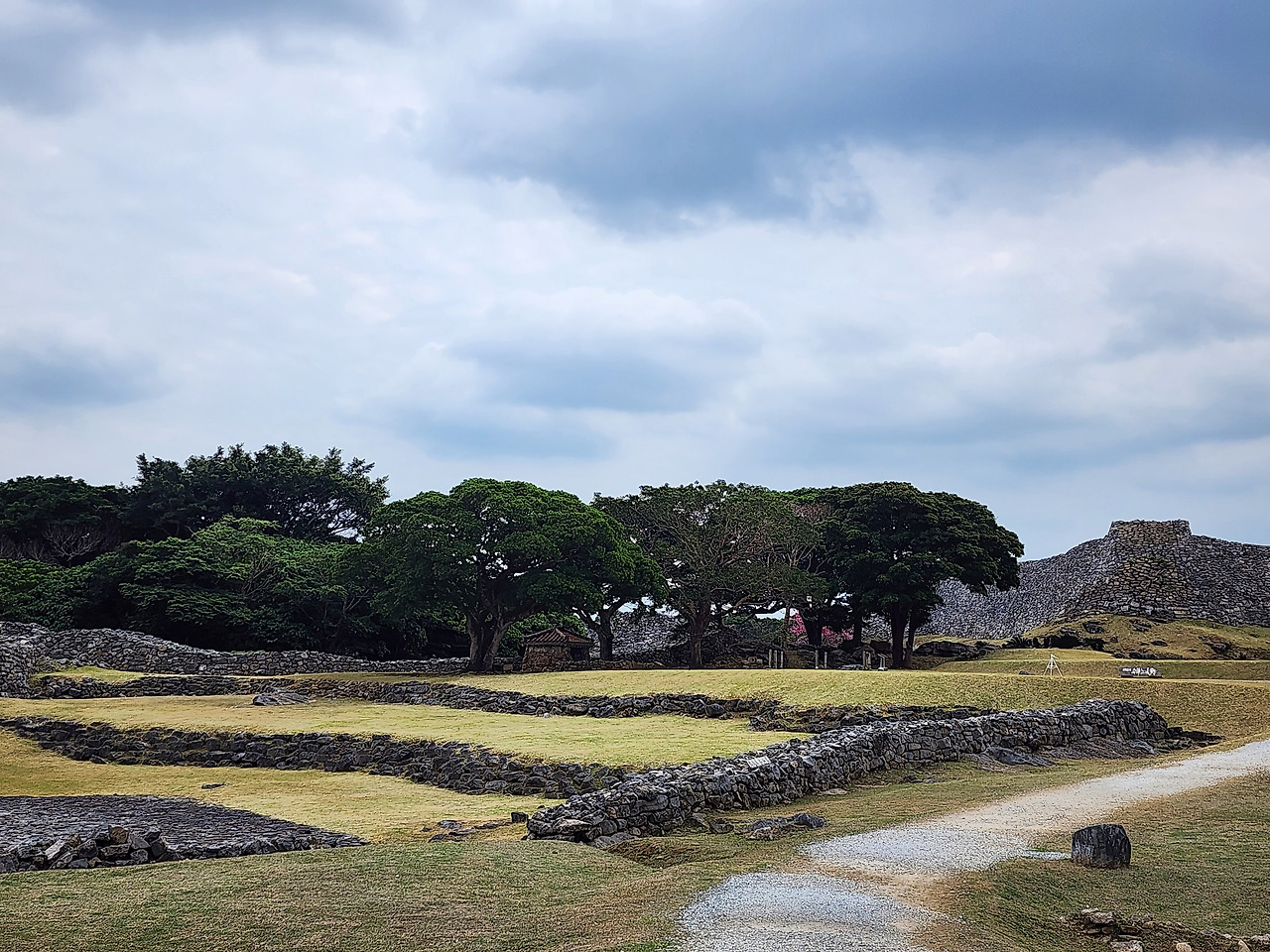 오키나와를 굳이 침공해 갈 인간들은 일본 밖에 없었을 텐데 참 험난해 보이는 협곡에 산성을 쌓았다고 생각 됐습니다만, 사실 한국의 산성들이 더 대단합니다. 우리나라 산성은 정말 첩첩산중에 쌓은 성들이거든요. 나키진 성터는 이렇게 해안 쪽에는 깎아지는 절벽 같지만, 입구 쪽은 그냥 평지입니다.