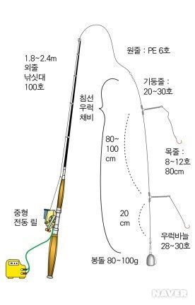 선상 우럭낚시 채비 구성
