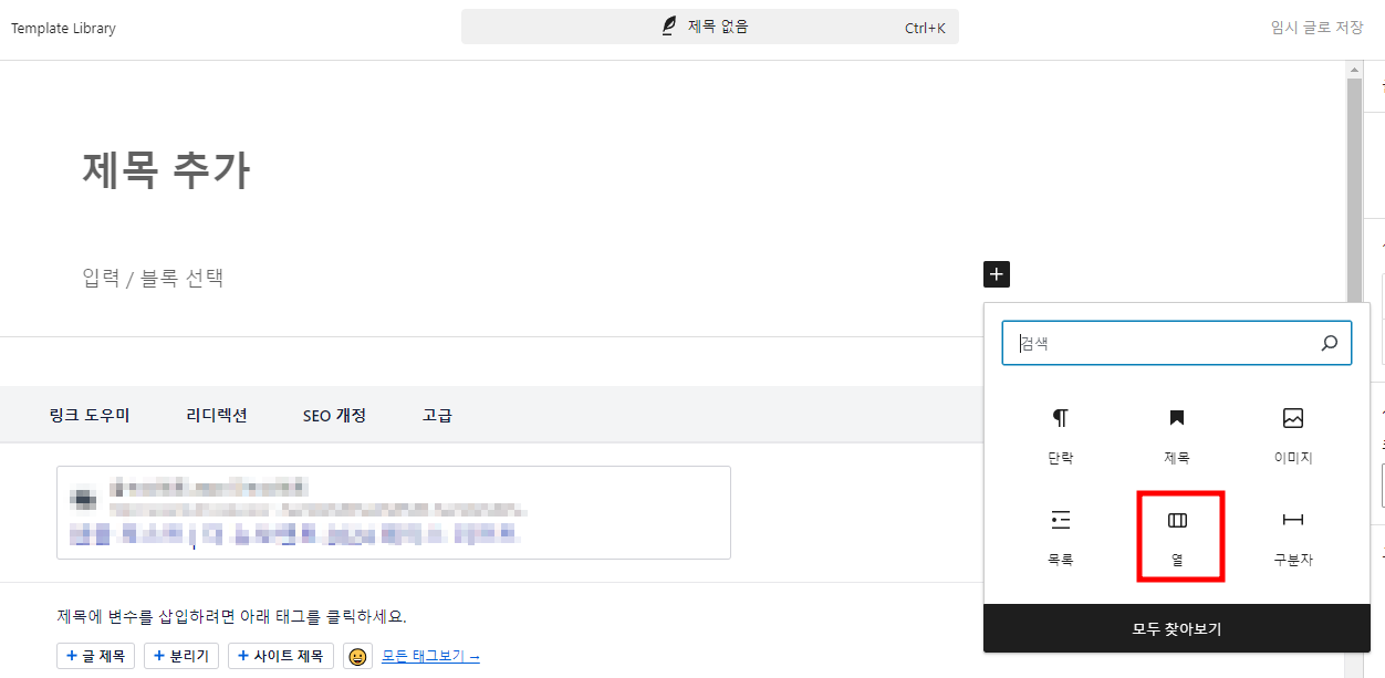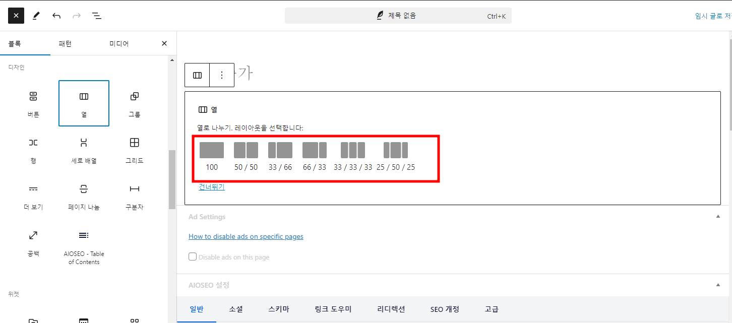 구텐베르크 편집기 칼럼 블록 추가하기