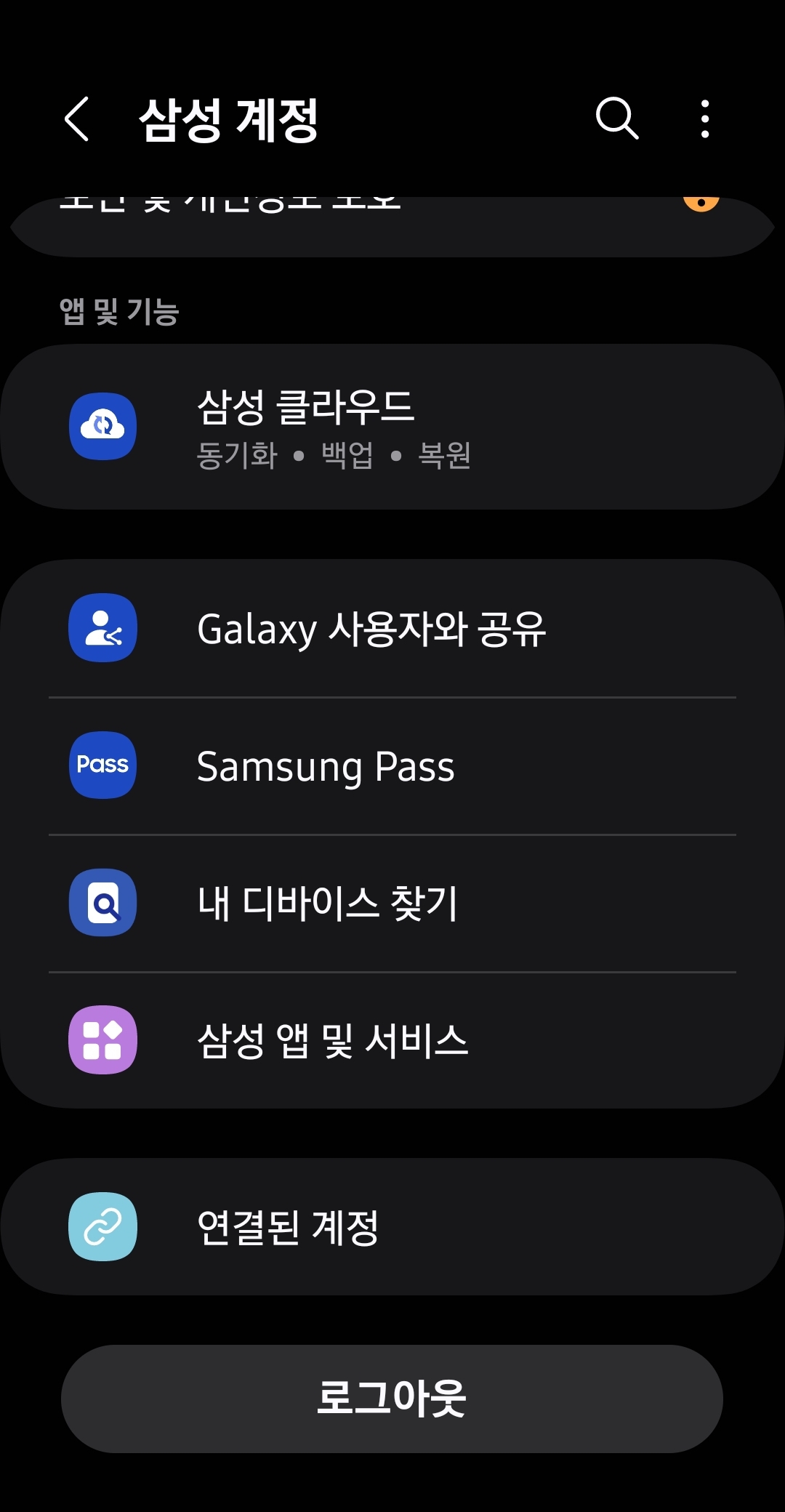 - Samsung 계정 선택
