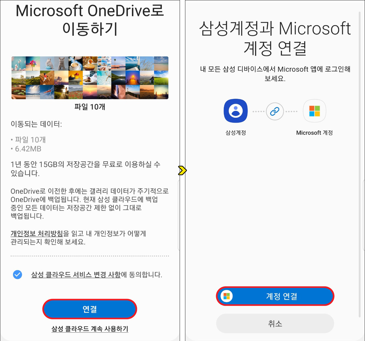 - 화면에 나타나는 프롬프트에 따라 삼성 클라우드 갤러리를 Microsoft OneDrive로 이동합니다.