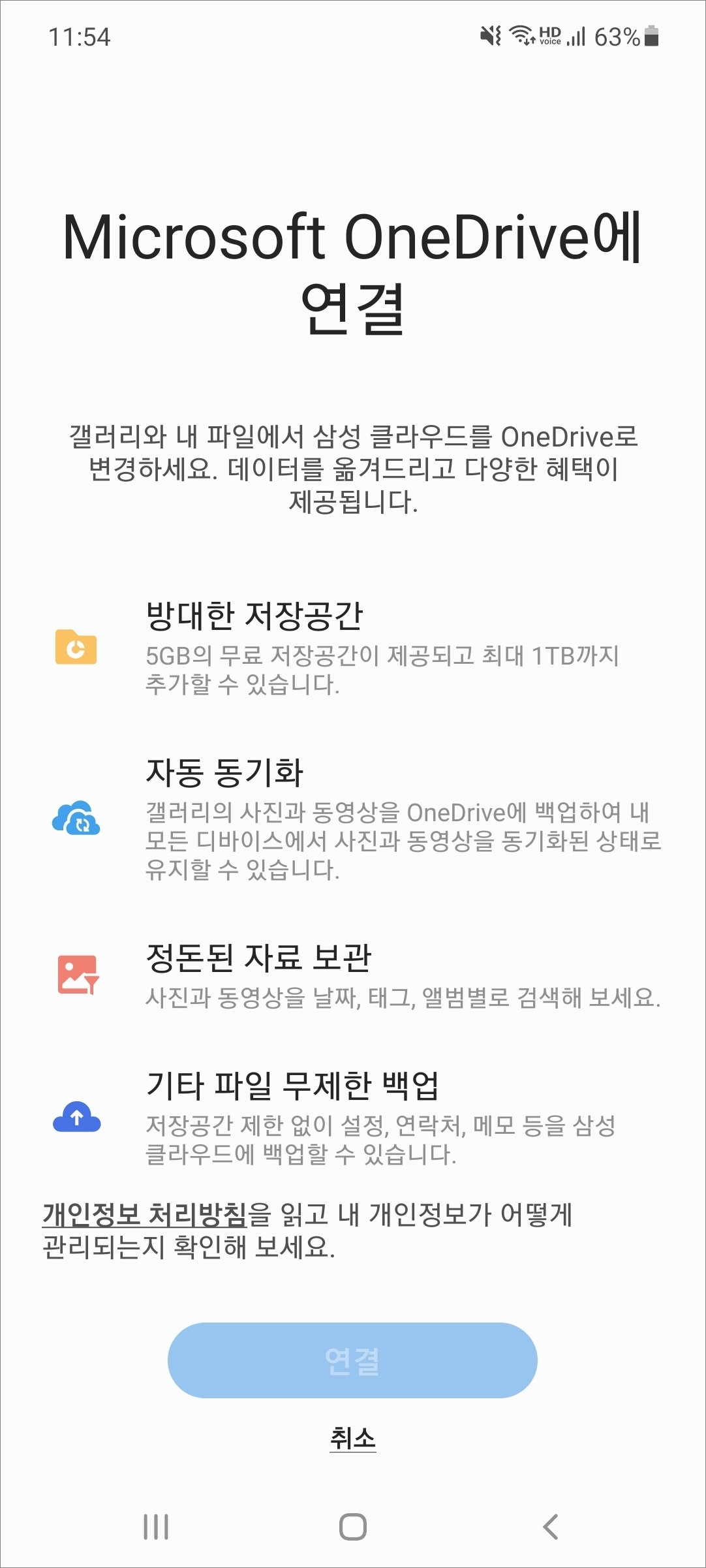 원드라이브와 삼성 갤럭시 갤러리 동기화 해제 방법