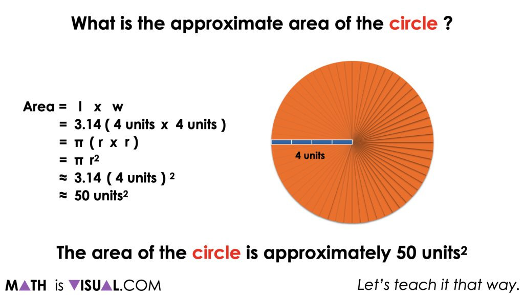 원을 매우 많은 수의 동등한 부채꼴로 자른 뒤, 이를 바둑판처럼 번갈아 뒤집어 나열하면 거의 직사각형에 가까운 모양이 됩니다. 이때 한 변의 길이는 $r$, 다른 변의 길이는 $\frac{1}{2} \times 2\pi r = \pi r$가 되어 면적은 곧 $\pi r \times r = \pi r^2$가 됩니다.
