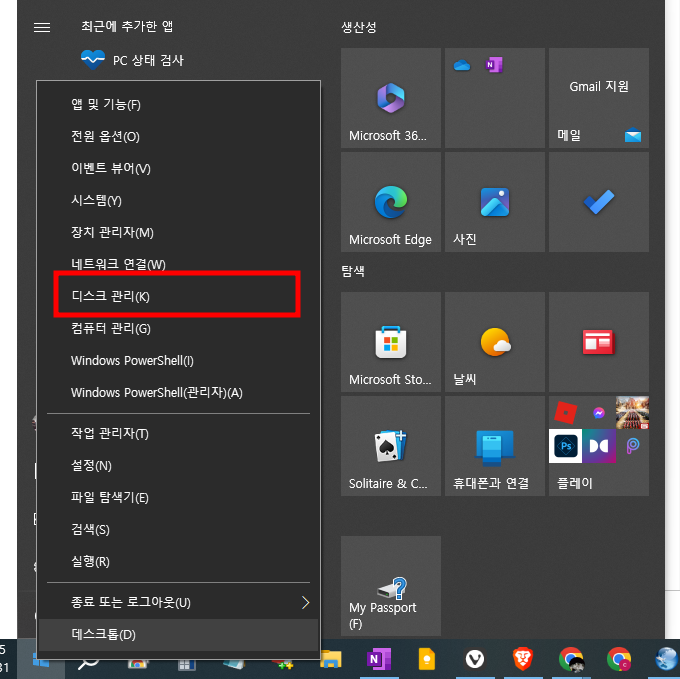 - 디스크 관리 열기