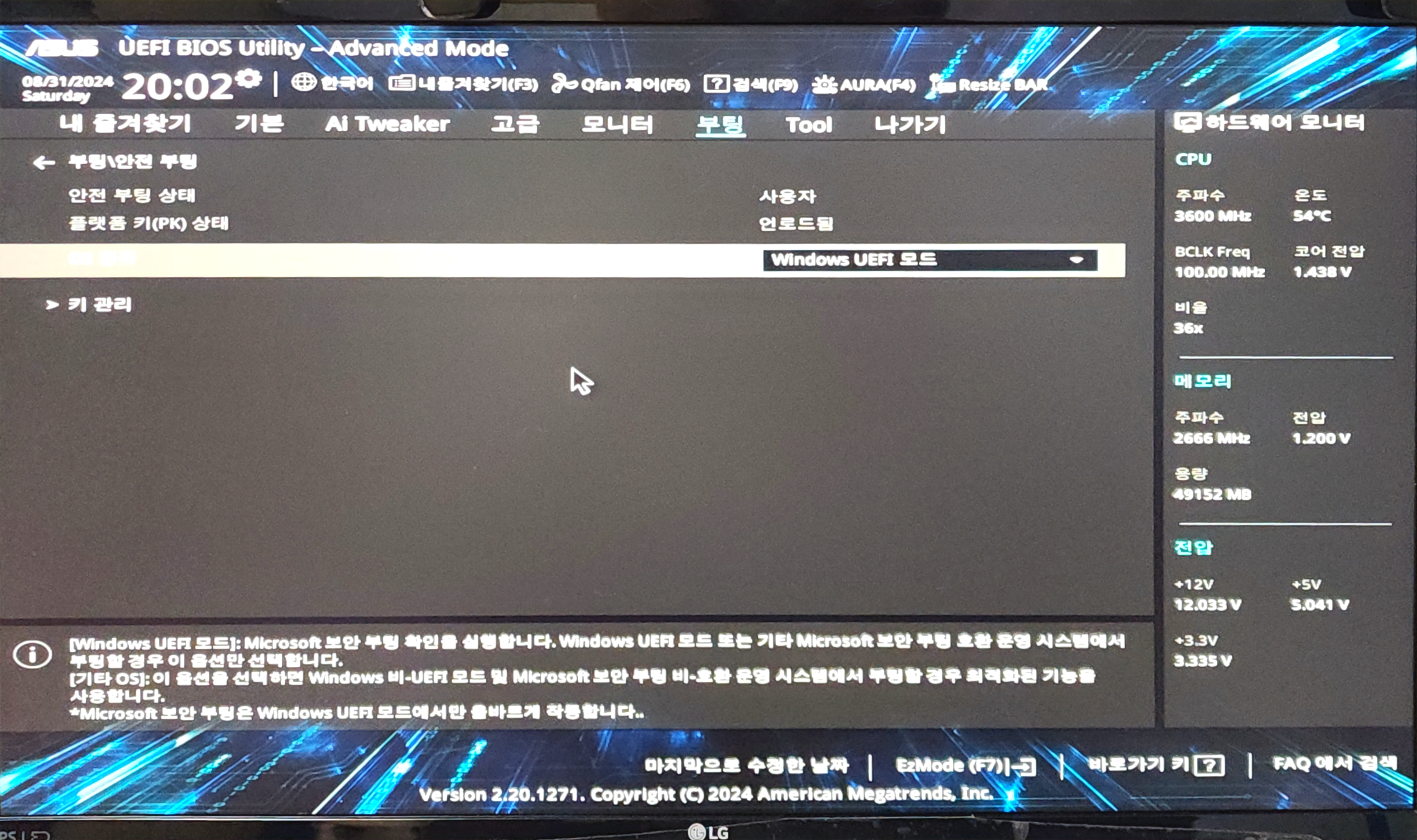 - BIOS 또는 UEFI 설정에서 부팅 모드를 UEFI로 변경합니다.