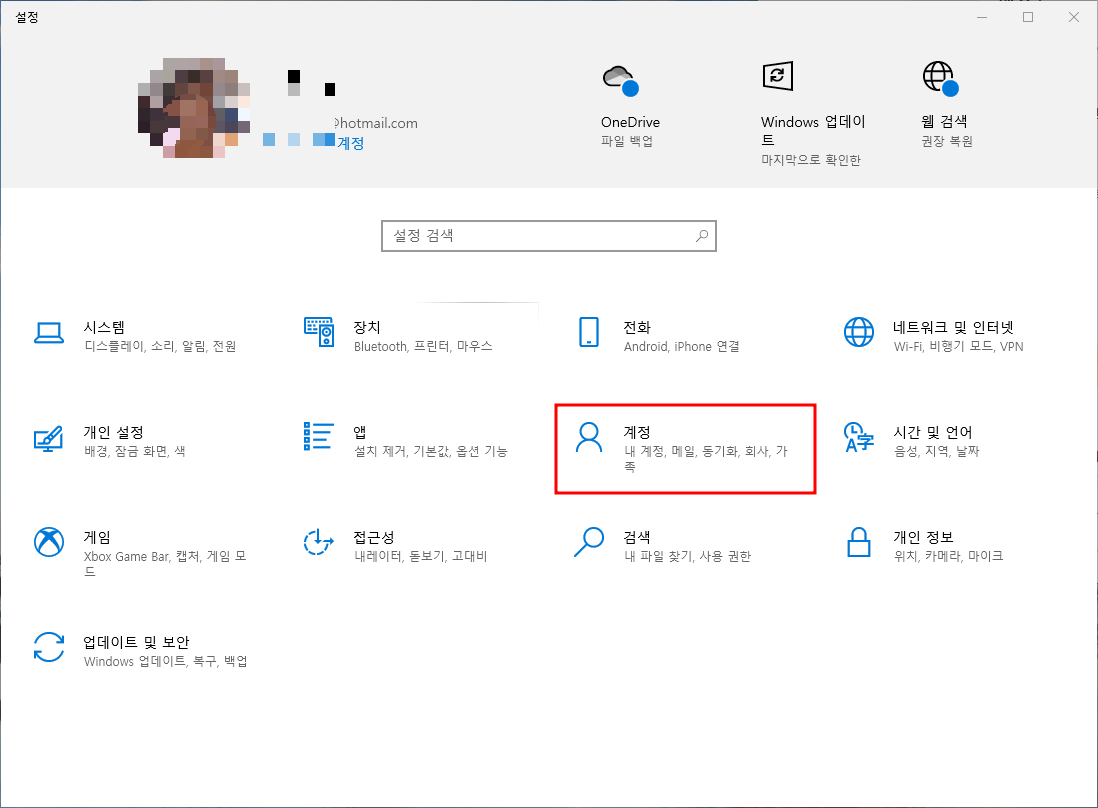 시작버튼을 클릭하거나Win + I키를 눌러설정을 엽니다. - 계정으로 이동: 왼쪽 메뉴에서
