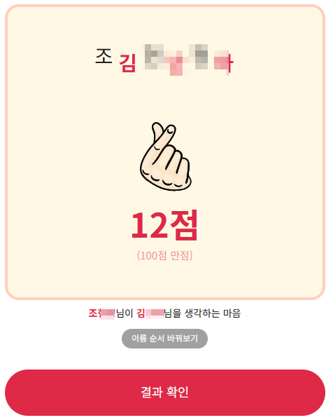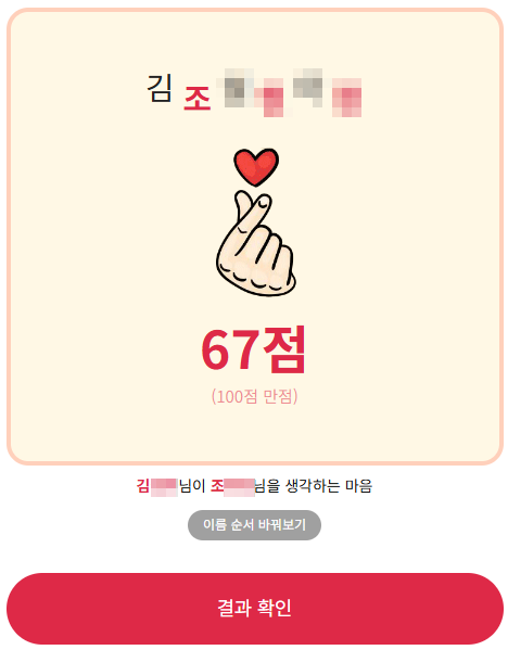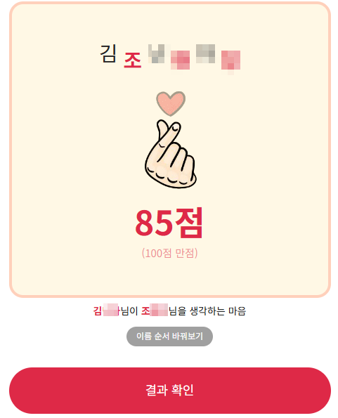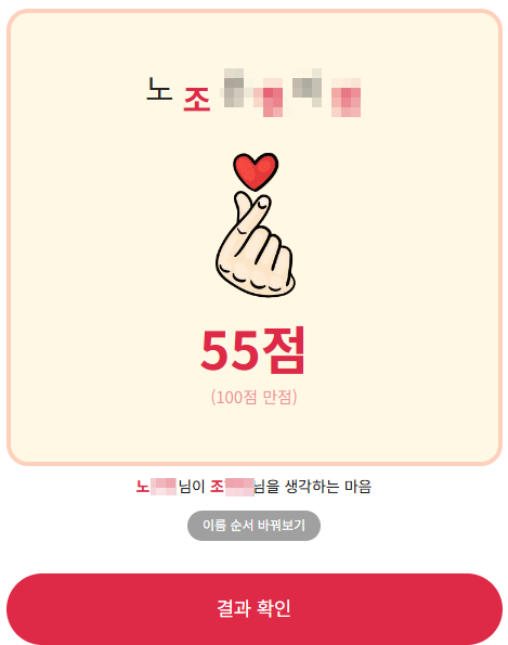 - 입력값: 내 이름, 상대 이름 - 한글 최대 3글자까지 지원