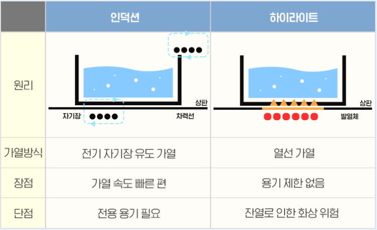 한눈에 보는 인덕션과 하이라이트 차이 비교
