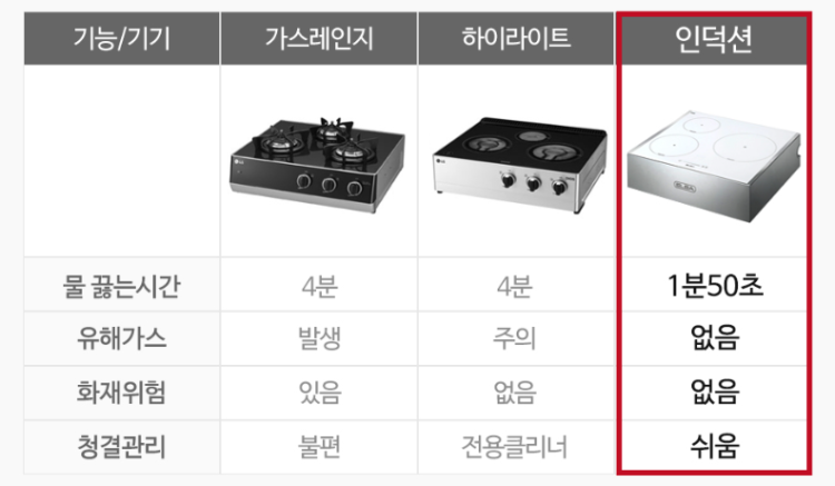 - 열효율이 높은 인덕션이 결과적으로 전력 사용량이 적어 요금 부담 완화