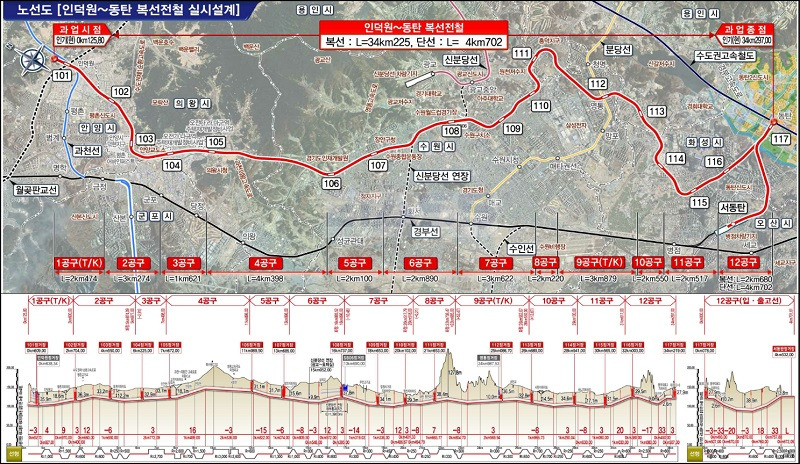 - 수도권 남부 인구 400만 명의 직결 수요를 최대한 포획하도록 “1번 국도-경수대로-동탄대로” 축을 그대로 지하화.