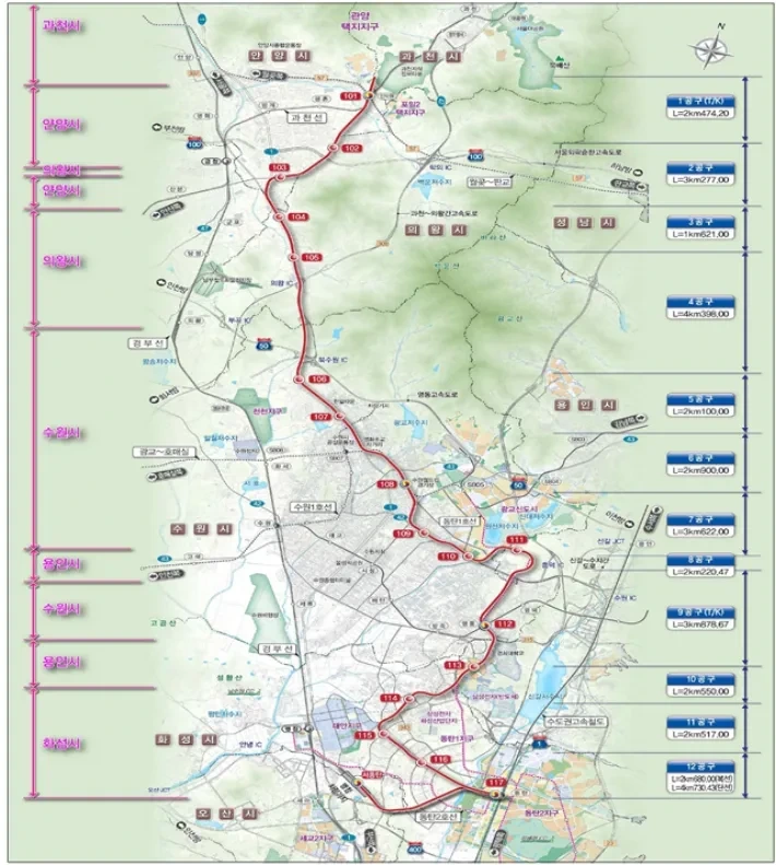 - 수도권 남부(안양-의왕-수원-용인-화성) 5개 시를 하나의 30 분 생활권으로 연결.
