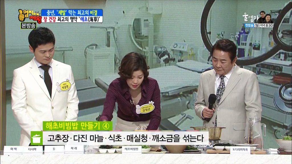 MBN의 건강 관련 프로그램인 '엄지의 제왕'이 있다. 대체로 건강에 관련된 내용을 다루지만, 음식이 건강과 밀접한 관련이 있음을 고려하여, 일부는 건강에 좋은 음식을 맛있게 먹는 방법에 초점을 맞춘다. 이러한 주제를 다룰 때 출연하는 패널 중 한 명이 배화여자대학교 전통조리학과 교수인 김정은 교수이다.